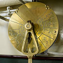 The B-2 or aft engine room contains a back-up duplicate of all critical machinery (generator, air compressor, fire pump, switchboard) plus the main propulsion engine. You can count the eight cylinders of the 550 horsepower supercharged Atlas Imperial diesel engine. It is a direct reversible engine; meaning there is no clutch or reverse gear. To reverse, the engine must be stopped, the cam reversed, and the engine restarted, sending the crankshaft in the opposite direction. Compressed air starts and reverses the engine. Ships cruising speed was 10 knots. A reduction gear under the step-up spins the propeller shaft at about one third the speed of the engine. Note the brass disc with the pointer behind the ladder that is the engineer’s end of the engine room telegraph you saw in the wheelhouse.