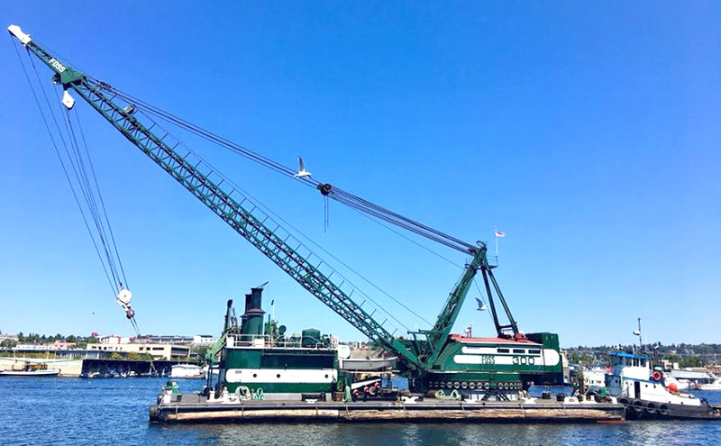 Built in Stockton, California, in 1943 for the U.S. Army, the 75-ton crane is one of the last steam-powered derricks on the West Coast. Foss purchased the derrick following World War II and has used it ever since on Puget Sound and in Alaska.