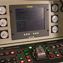 Control area, forward end of the auxiliary machinery space (port side). Panning left is the doorway that leads to the aft end of the engine room.